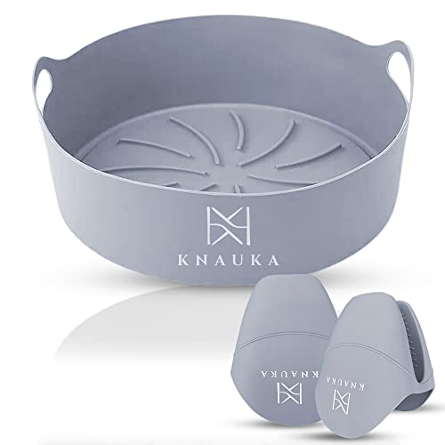 MERCURIAL Molde Silicona Freidora de Aire con Guante, Accesorios Freidora sin Aceite - Molde Silicona Air Fryer Redondo con Asas, Moldes Silicona Freidora de Aire (18 cm)