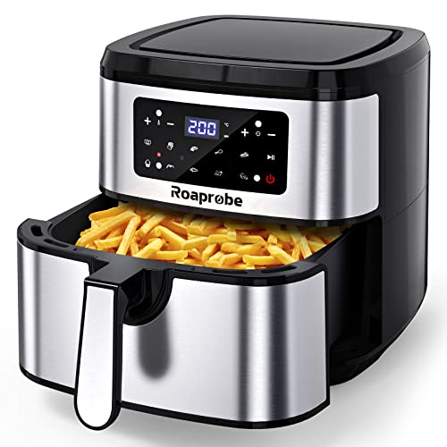 Freidora sin Aceite 7,5L, Roaprobe Freidora de aire, Air Fryer 1800W, on 9 Programas, Tiempo y Temperatura Ajustable, con Recetas para Patatas Fritas/Pollo Asado/Verduras, Sin BPA ni PFOA