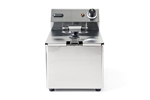 HENDI Freidora eléctrica, T ajustable hasta 190°C, termostato de seguridad, zona fría, con tapa y cesta de freír, tanque de aceite extraíble, 8L, 230V, 3500W, 265x430x(H)345mm, acero inoxidable