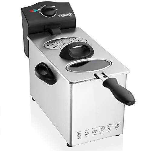 Aigostar Kenny - Freidora de 3 litros, 2200W, tapa con ventana de visualización, totalmente desmontable, control de temperatura, acero inoxidable, temporizador. Limpieza y extracción de aceite fácil.